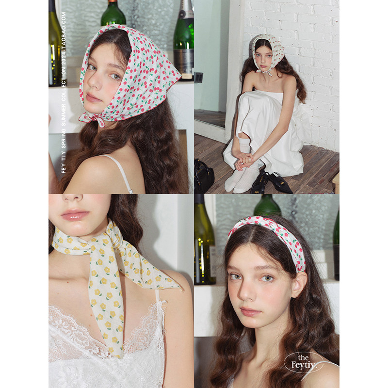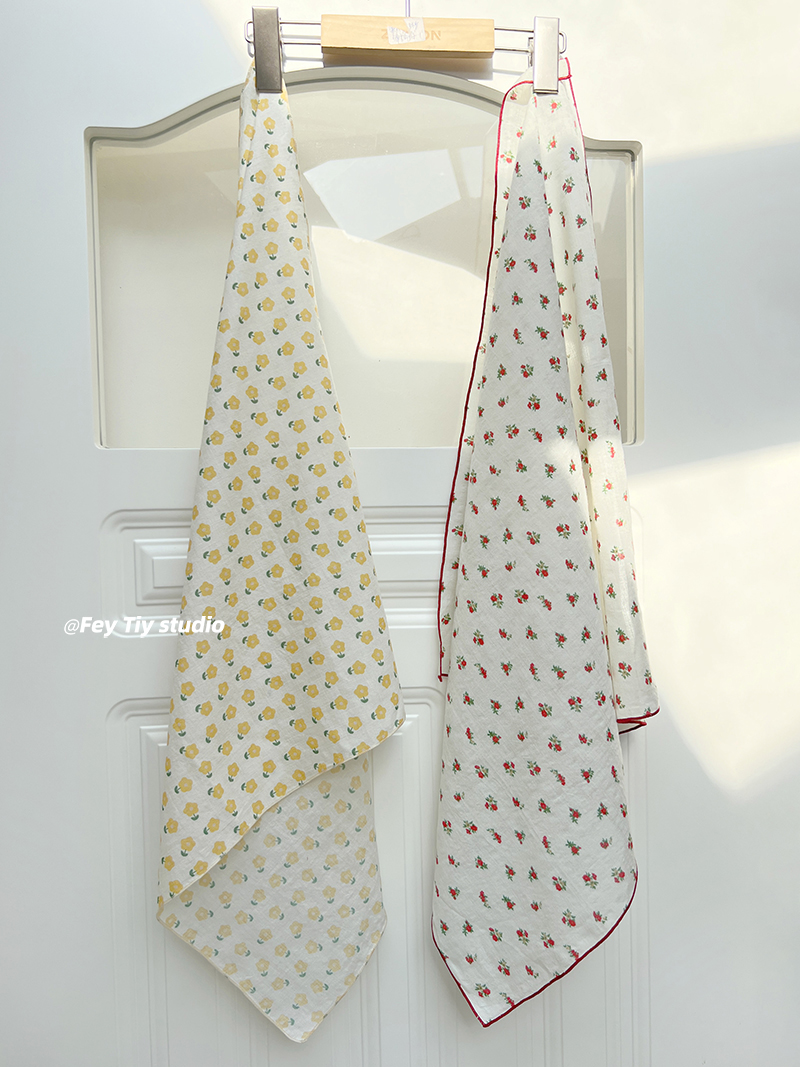 feytiy 南法小碎花纯棉方巾包头头巾女春夏多功能丝巾女发带绑发