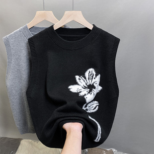 2025年早春新款 毛衣女潮 背心女设计感小众针织圆领马甲女百搭无袖