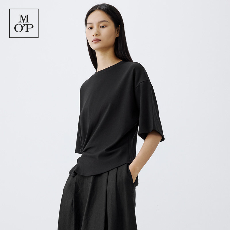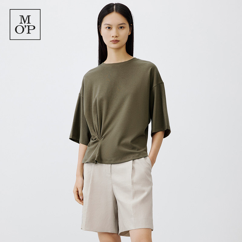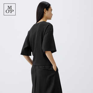 MOP 2025夏季 新款 Marc 设计感短袖 Polo 圆领抽褶落肩时尚 T恤女