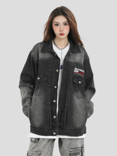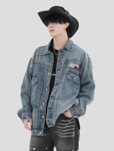 夹克男 旗帜LOGO刺绣牛仔外套宽松工装 INSstudios 国潮牌情侣美式