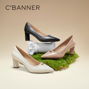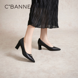 秋季 千百度裸色粗高跟鞋 新款 通勤羊皮法式 女 单鞋 静音系列