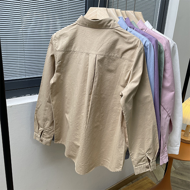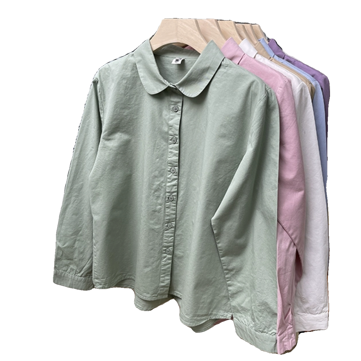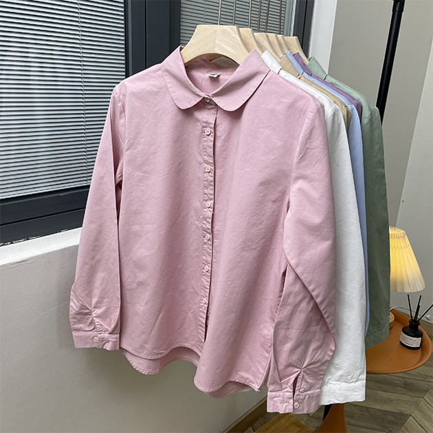 日系文艺娃娃领基础简约衬衣纯棉百搭宽松显瘦挺括叠穿打底衬衫 女