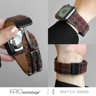4代se ultra毛茸表带44mm KASO适用于苹果AppleWatch9手表表带哈里斯毛呢iwatch11表带秋冬高级女新款