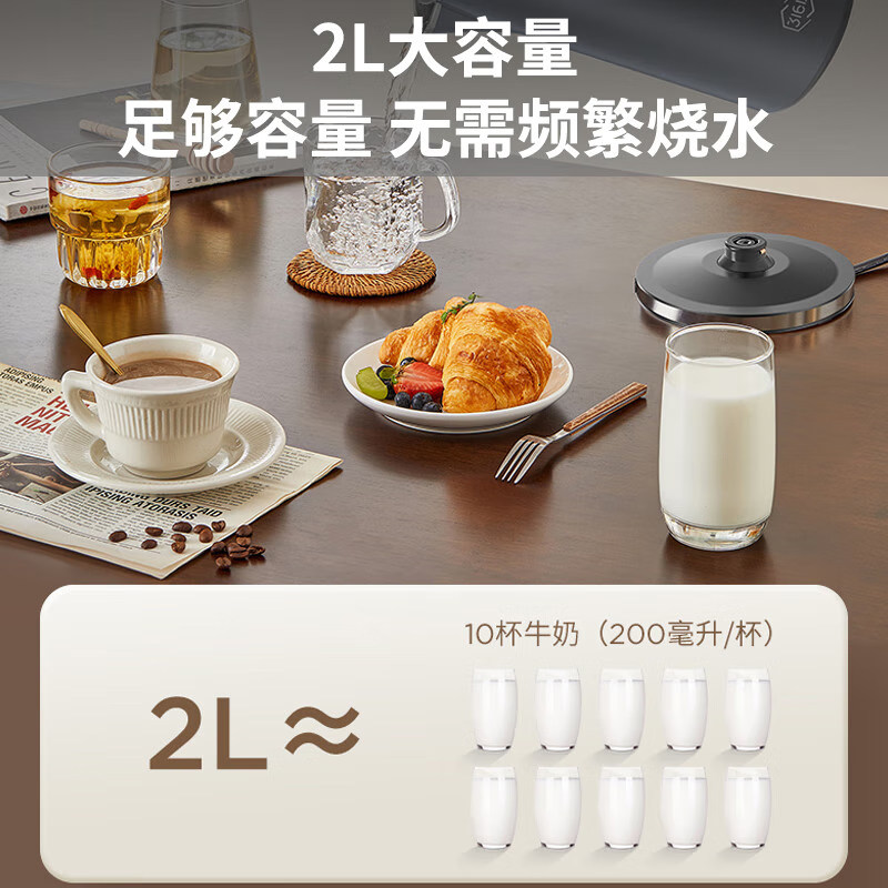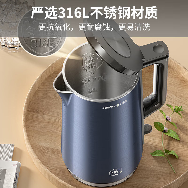九阳电热水壶家用保温2L烧水壶自动断电开水煲316不锈钢电水壶