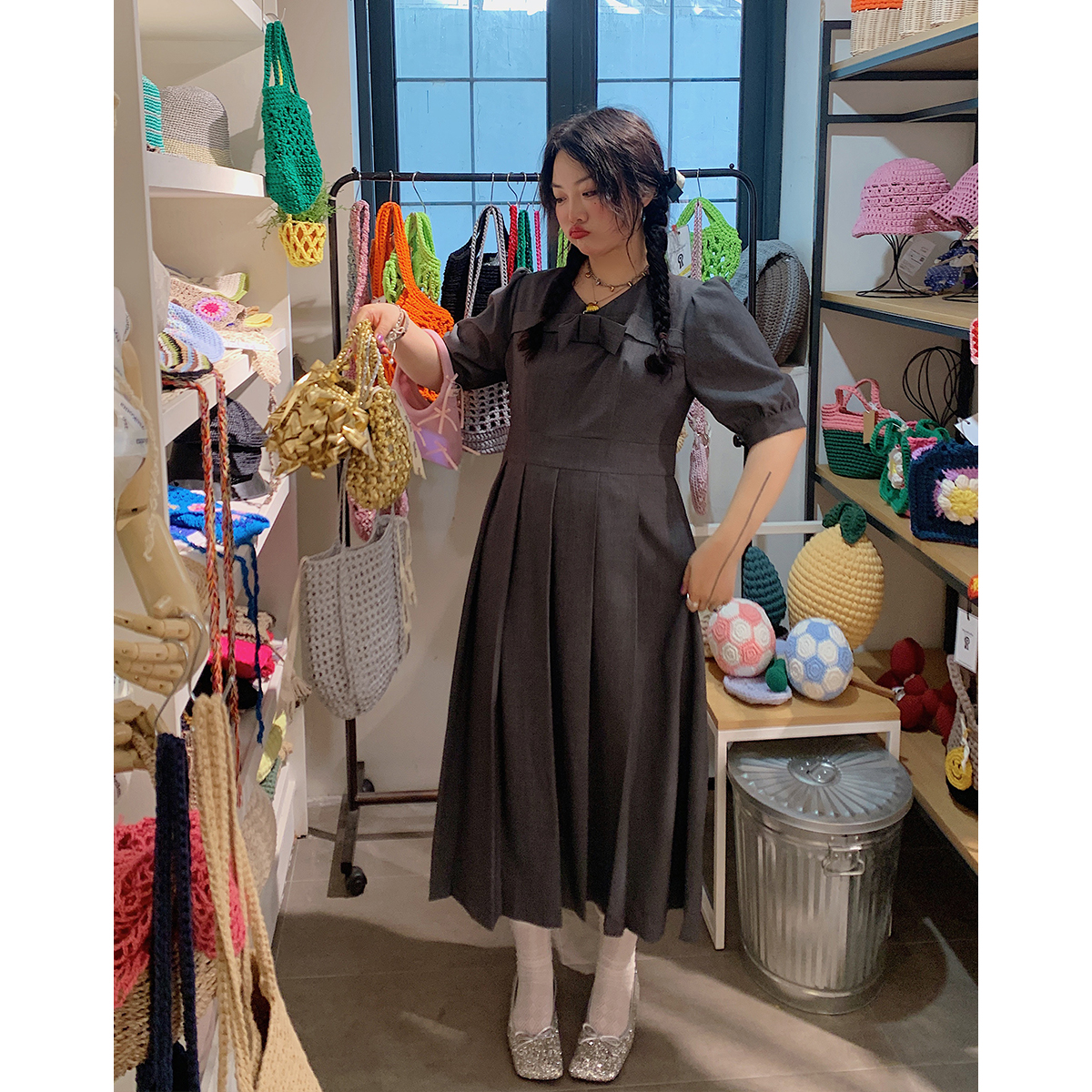 女装 高级感气质大码 V领裙子 2025年新款 金大支蝴蝶结连衣裙女夏季