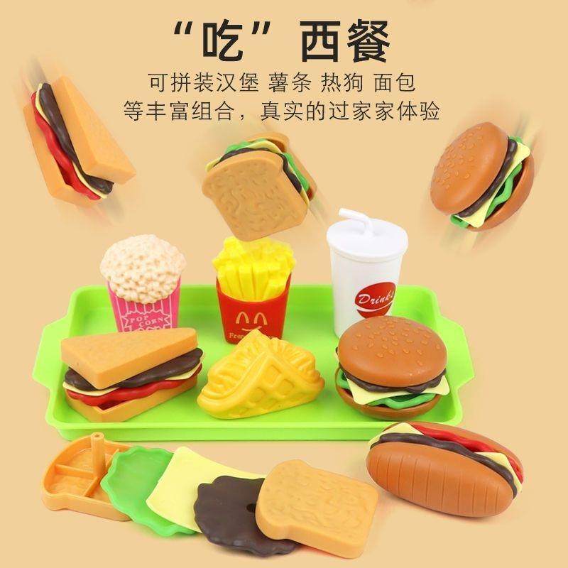 可拆装 汉堡套餐模具薯条三明治西餐仿真过家家食物男女孩儿童玩具