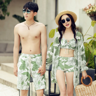 情侣泳衣分体比基尼小胸聚拢水上乐园性感情侣温泉海边度假三件套