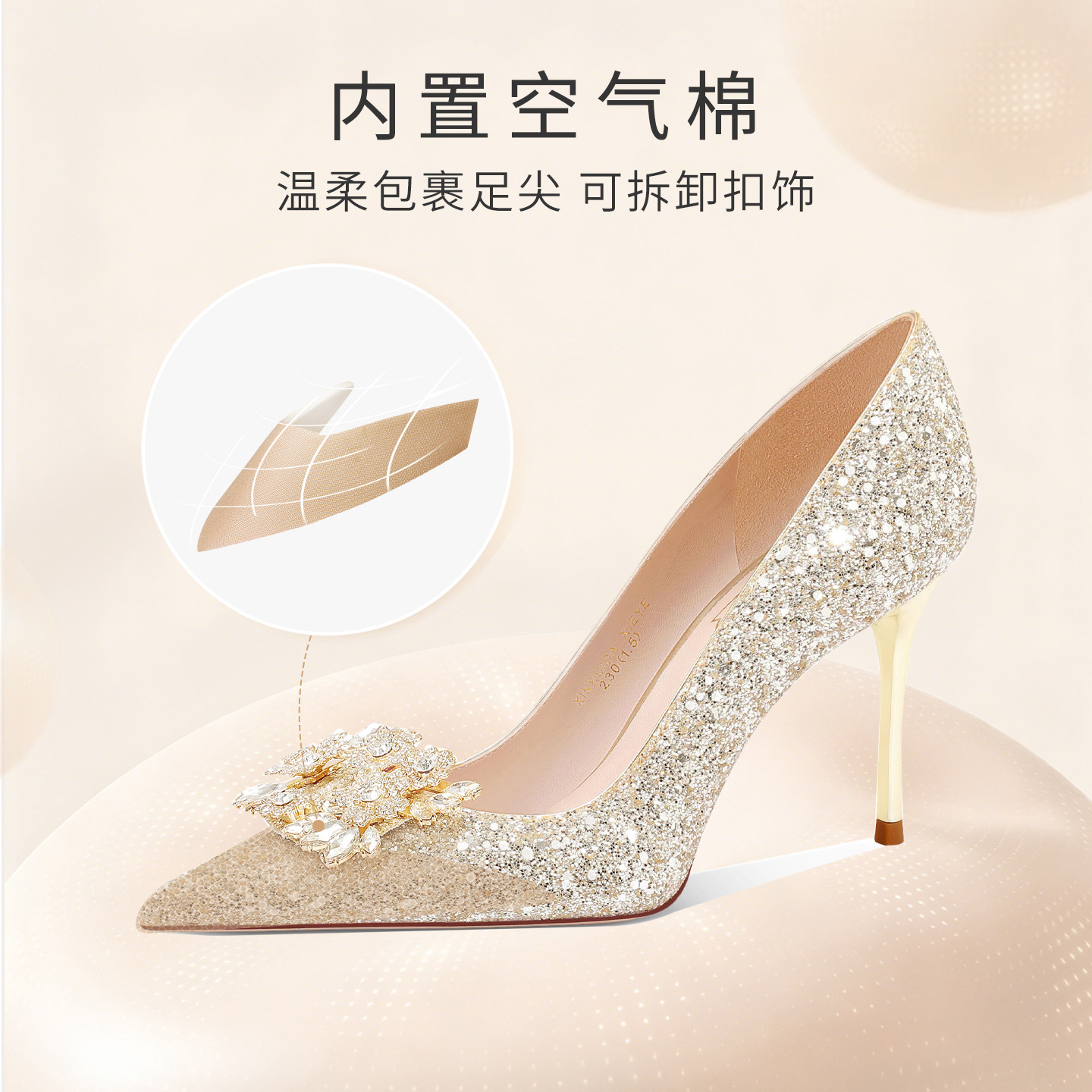 新娘婚鞋 禾秀主婚纱两穿高跟鞋 女款 夏季 不累脚 2026新款 爱丽拉法式