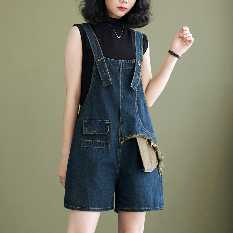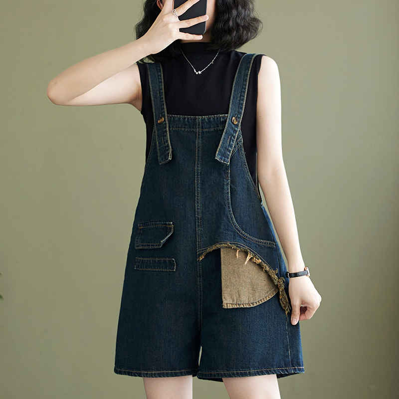 设计感宽松显瘦休闲百搭阔腿连体裤 女夏季 潮 牛仔背带短裤 复古工装