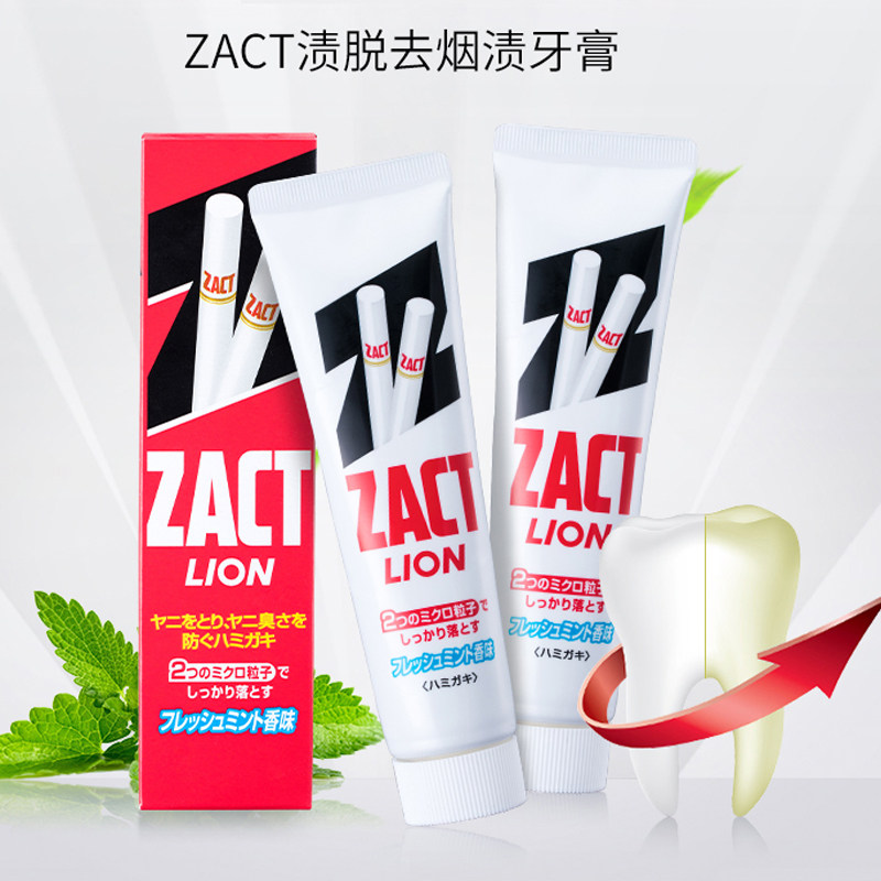 3支日本狮王zact去烟渍茶渍牙膏男女专业去齿垢清洁牙黄清新口气