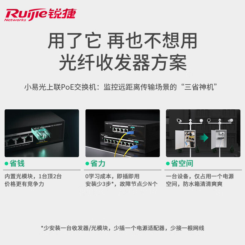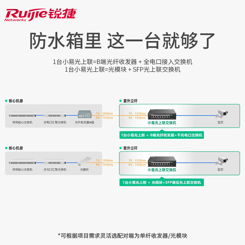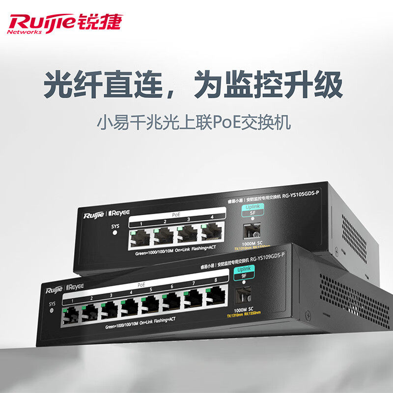 企业级桌面式 锐捷睿易网络POE千兆交换机RG 非网管型SC光上联8口千兆POE下联 官方旗舰店 YS109GDS