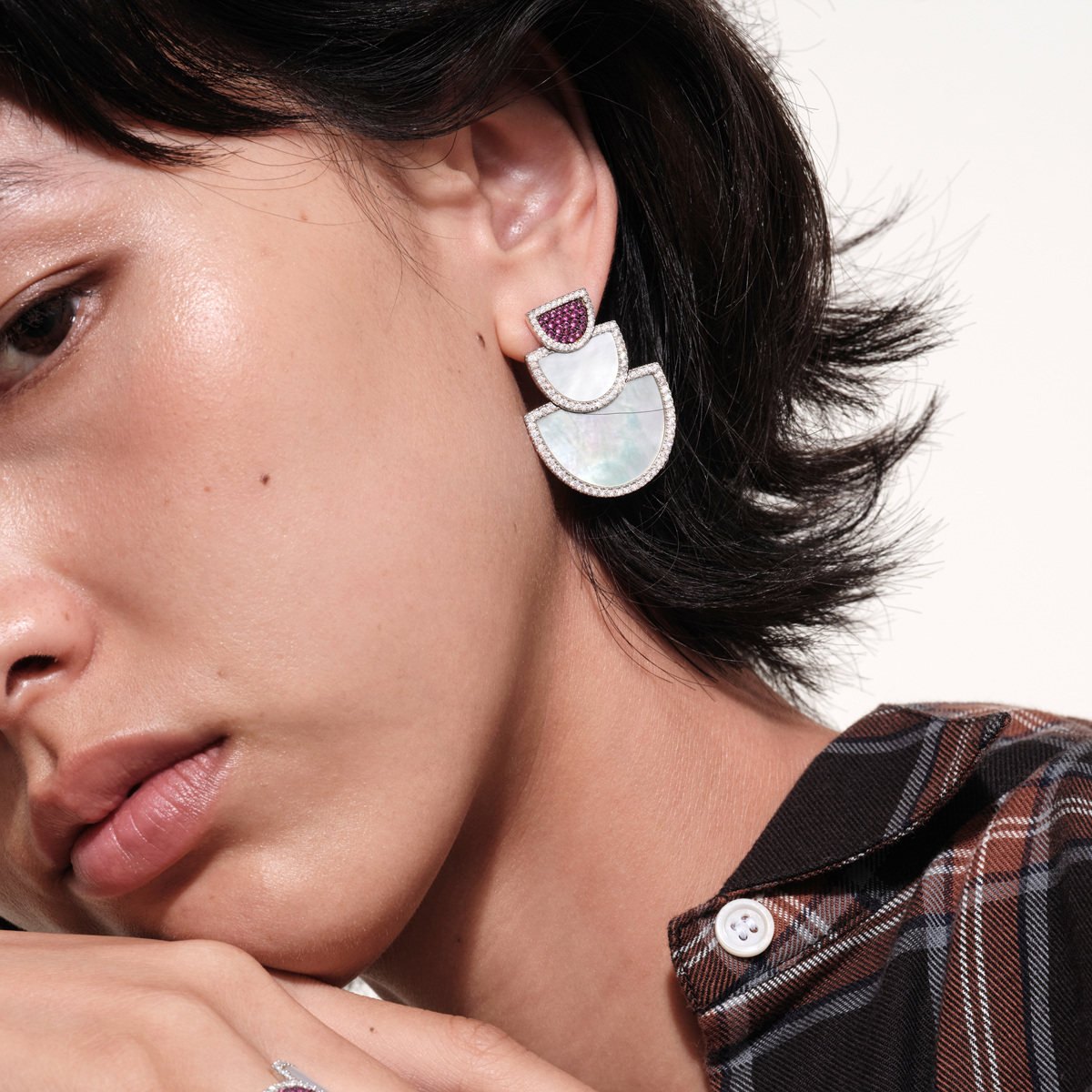 AE14867M 三层半月天然母贝粉色耳环925银高级轻奢女 APM Monaco