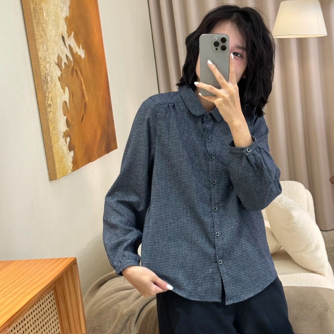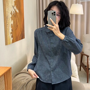 时尚 新款 百搭文艺复古休闲女上衣 春秋季 2026色织格子翻领衬衫