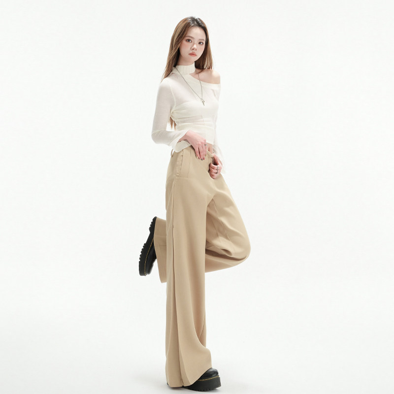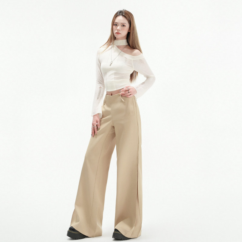 拖地裤 女2025春夏显瘦辣妹百搭长裤 复古卡其色直筒休闲裤 BRN美式