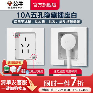 公牛插座隐藏插座嵌入式 插座冰箱五孔86型面板 隐形插座内凹内嵌式