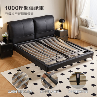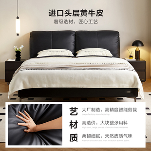 全友家居意式 黑色头层牛皮双人大床 极简真皮床主卧室家具2025新款