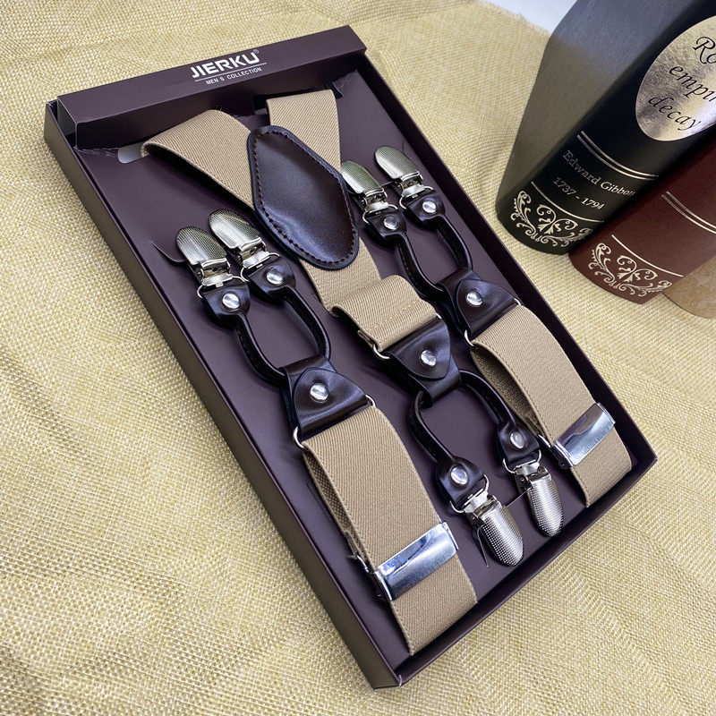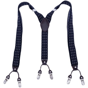 子防滑吊带男式 男士 老人裤 带胖人加长弹力西裤 背带夹英伦六夹吊裤