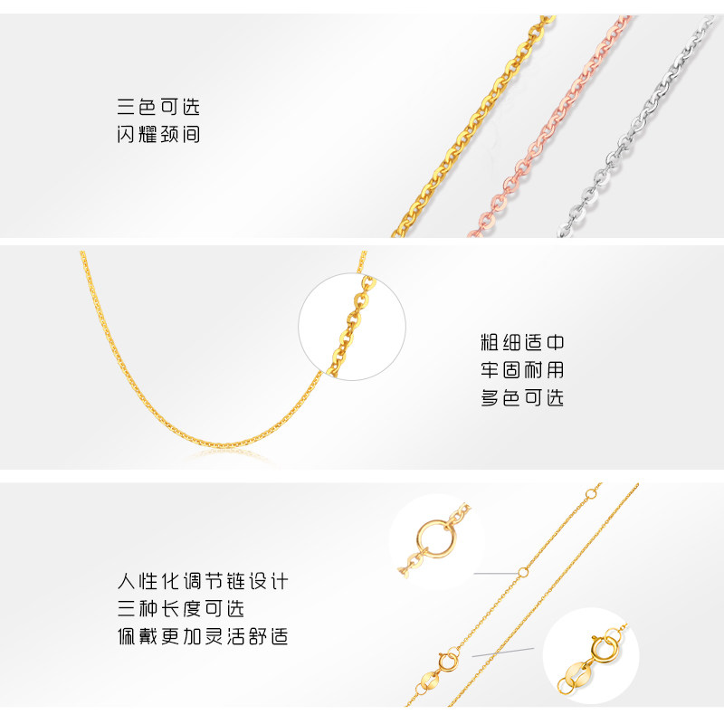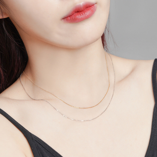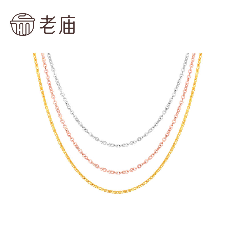 老庙黄金18K金素链轻盈闪O链基础百搭简约项链彩金自戴送礼物