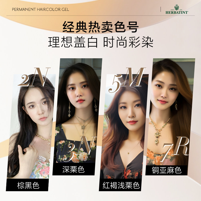 Herbatint荷碧汀染发剂天然植物自己在家染发膏无刺激遮盖白发