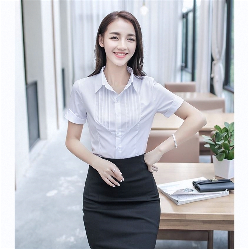 简约学生范2025新款 修身 春夏装 女职业衬衫 潮 雪纺打底衫 短袖 OL长袖