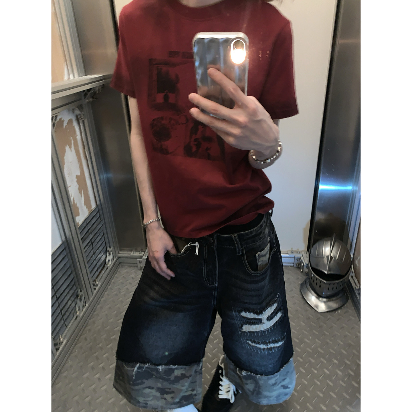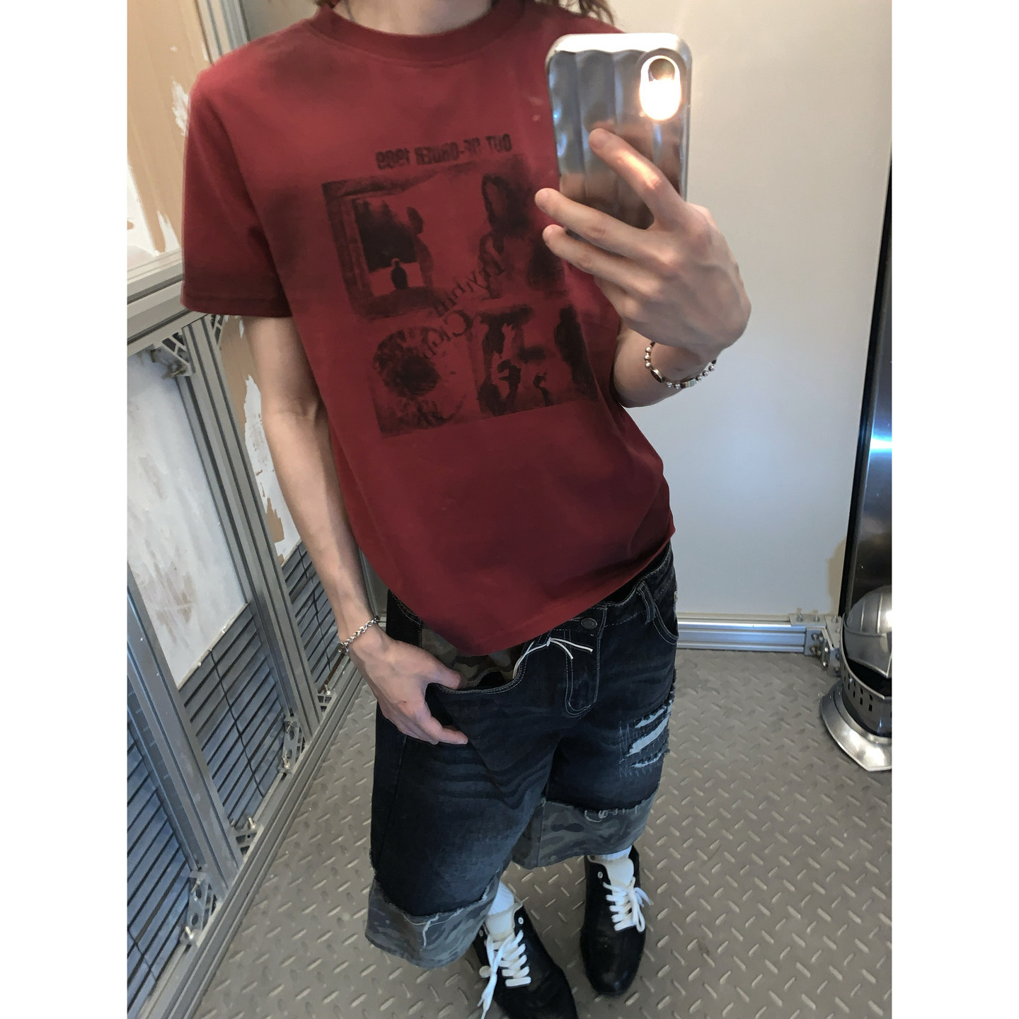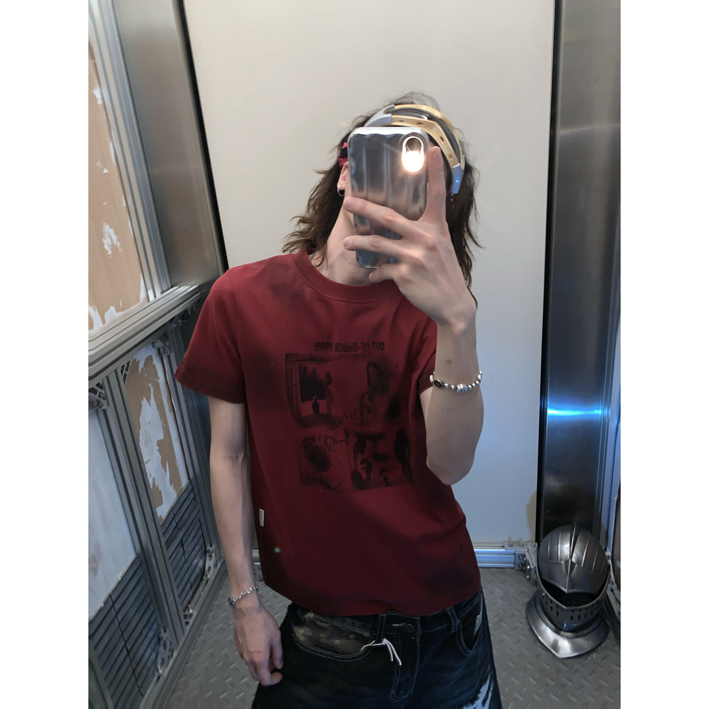 阿荒与阿卤美式 男潮T恤 复古脏染做旧设计感高街宽松直筒圆领短袖