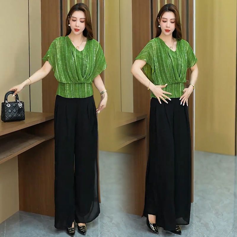 女高级感百搭显瘦V领短袖 2025年夏季 遮肚子雪纺衫 新款 上衣 时尚