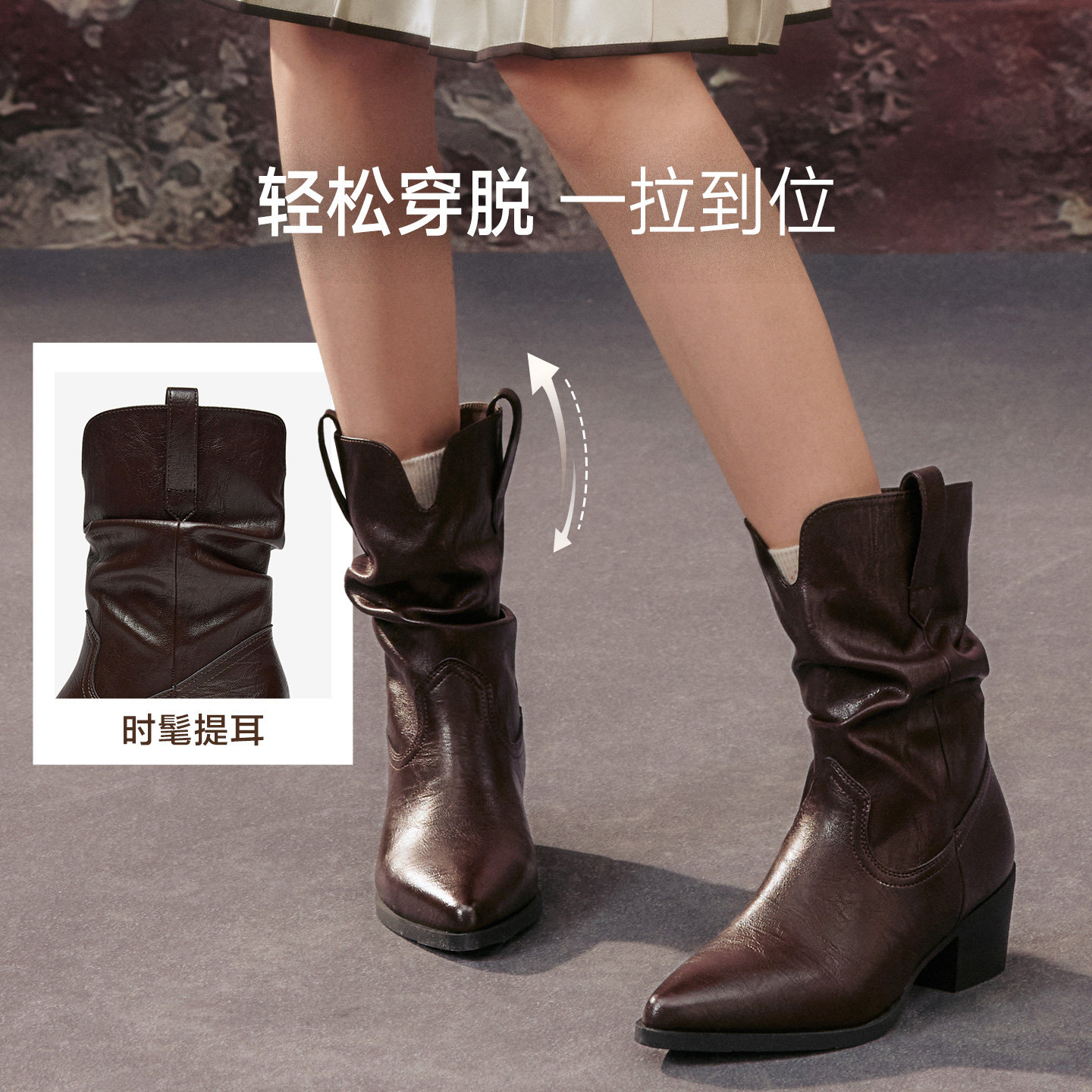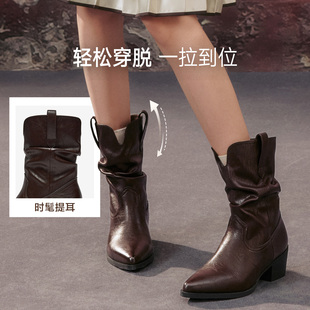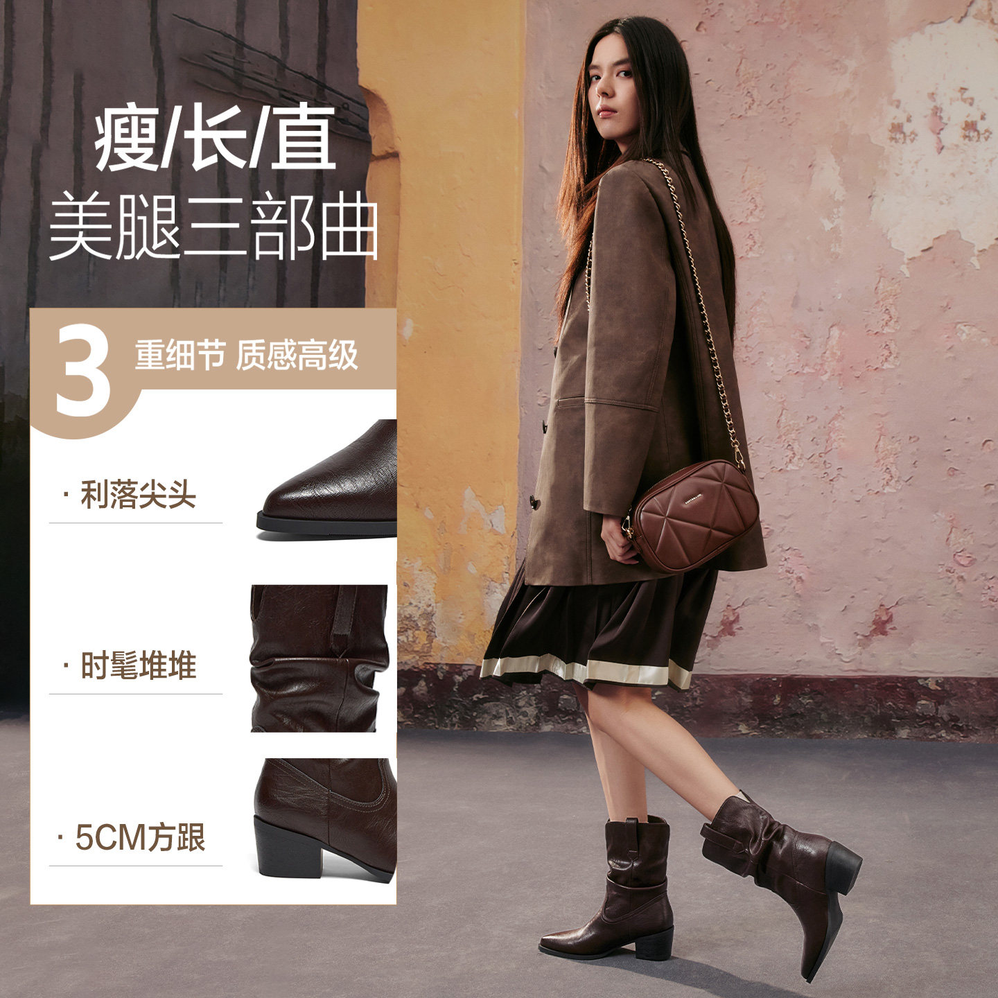 靴女瘦瘦短靴弹力靴CEG07DZ5 加绒时装 TATA他她喵爪靴2025冬季 新款