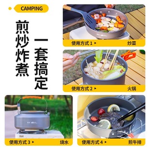 户外锅具露营炊具野炊装 备全套野营烧水壶厨具煎煮锅套锅便携套装