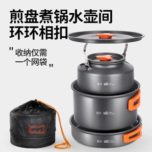 拓村户外锅具露营炊具野炊装 备野营烧水壶厨具煎煮锅套锅便携套装