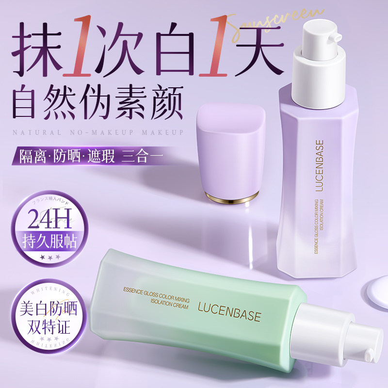 隔离霜防晒遮瑕三合一提亮肤色素颜霜妆前乳紫色正品 官方旗舰店