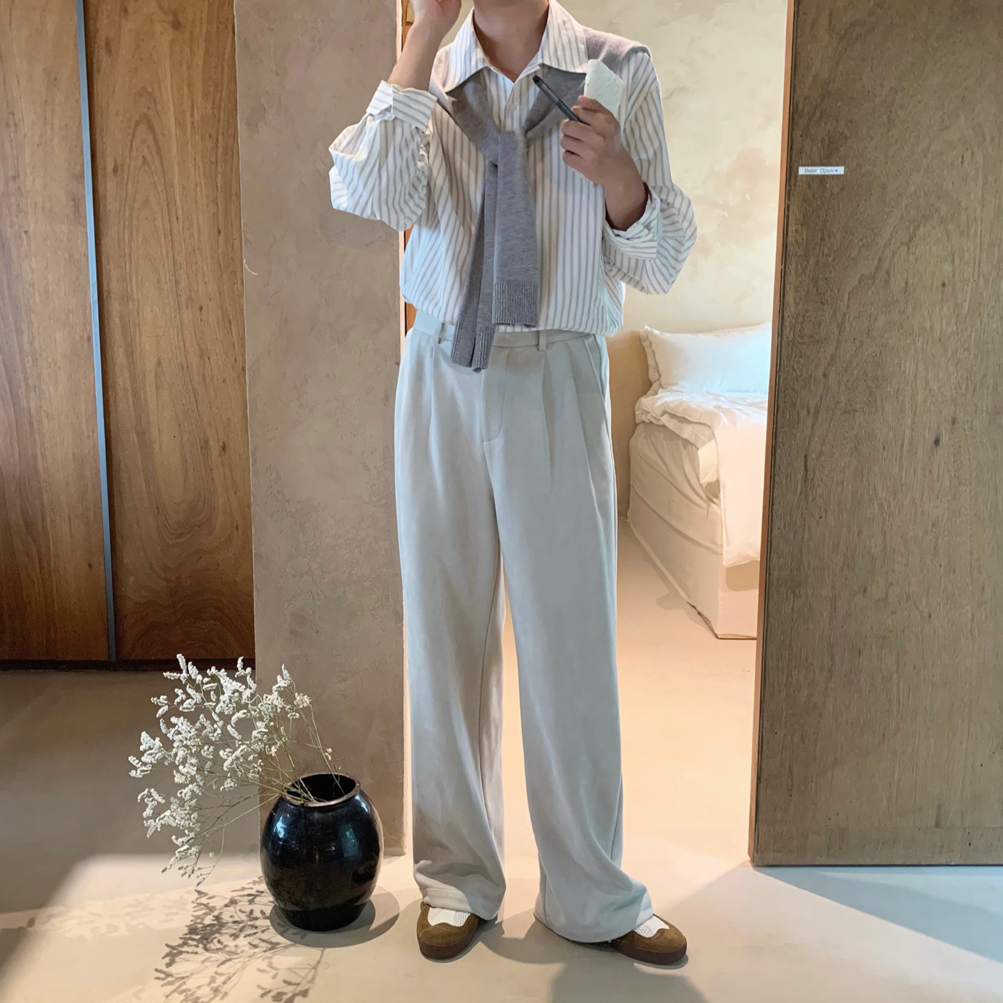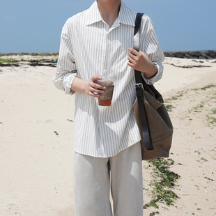男长袖 披肩条纹衬衫 日系文艺休闲宽松衬衣 白山之纹 阿茶与阿古