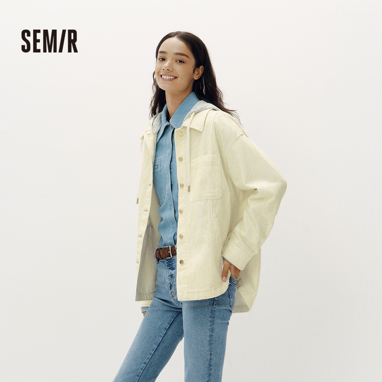 宽松秋2025新款 森马牛仔外套女中长款 连帽夹克 商场同款 森柔牛仔