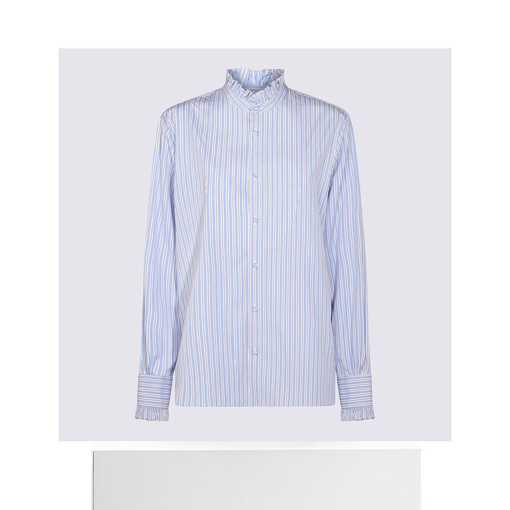 双色水洗磨毛长袖 几立 牛仔衬衫 夕阳倒映在蓝色天际