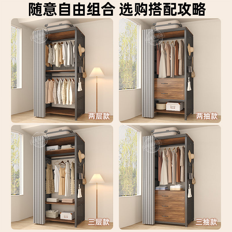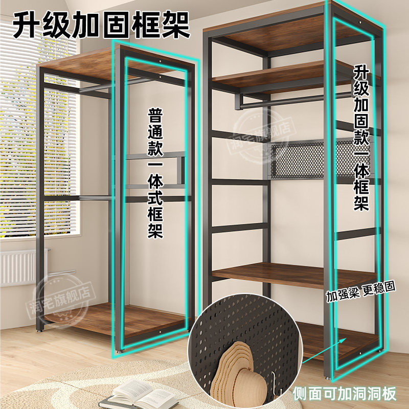 衣帽架落地卧室家用开放式 组合衣柜简易收纳挂衣架金属衣帽间架子