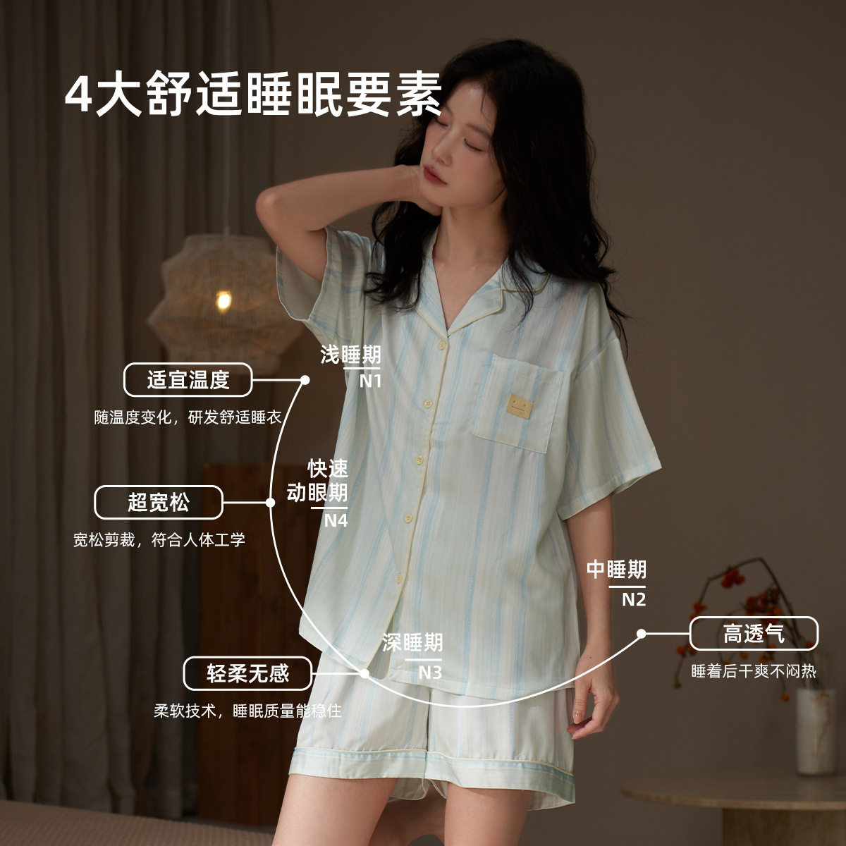家居服套装 情侣睡衣夏款 男士 短裤 送礼物 凉感冰丝女小清新夏天短袖