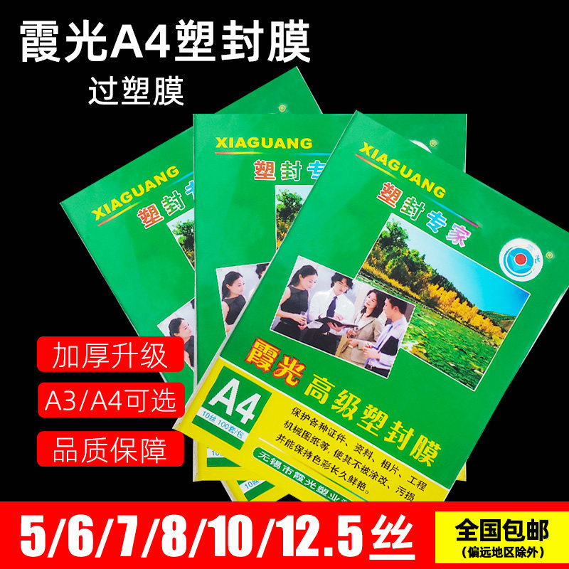 霞光过塑膜a4纸过胶膜奖状透明10丝相片照片热缩塑封膜a3100张8C