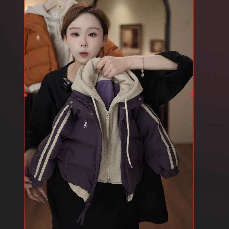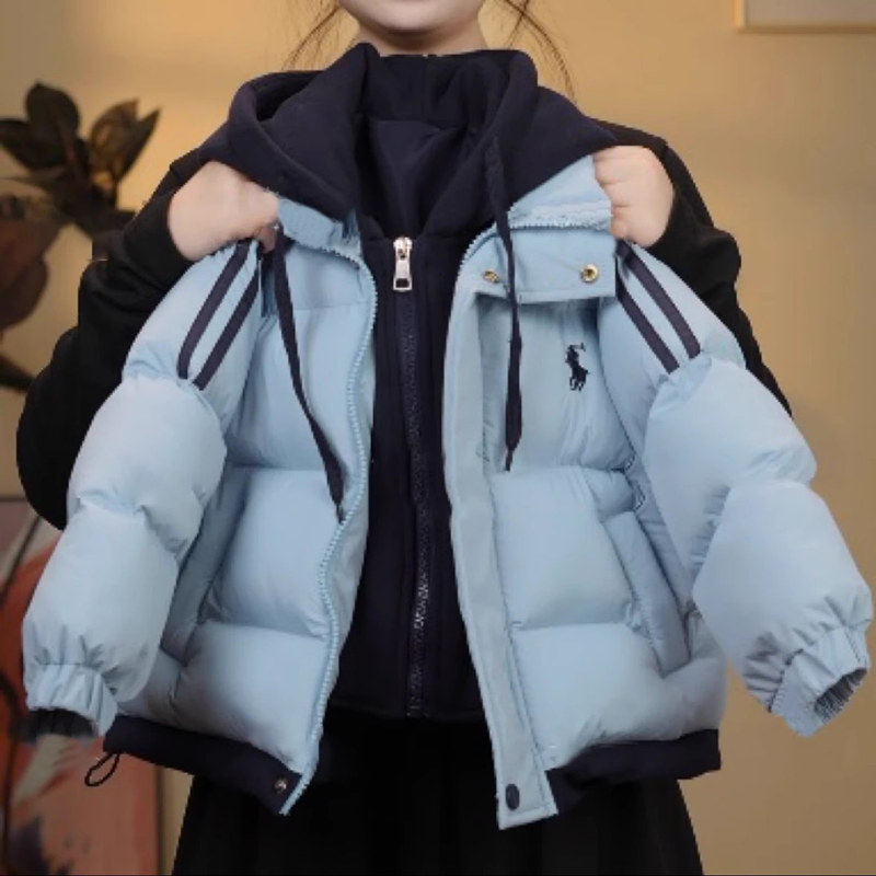 冬季 儿童棉衣男童女童拼色连帽假两件棉袄帅气保暖棉服外套潮 新款