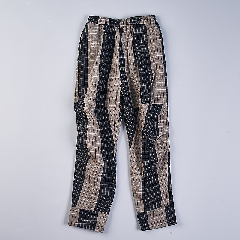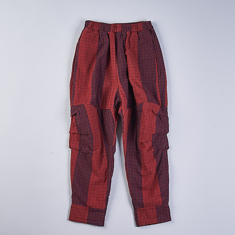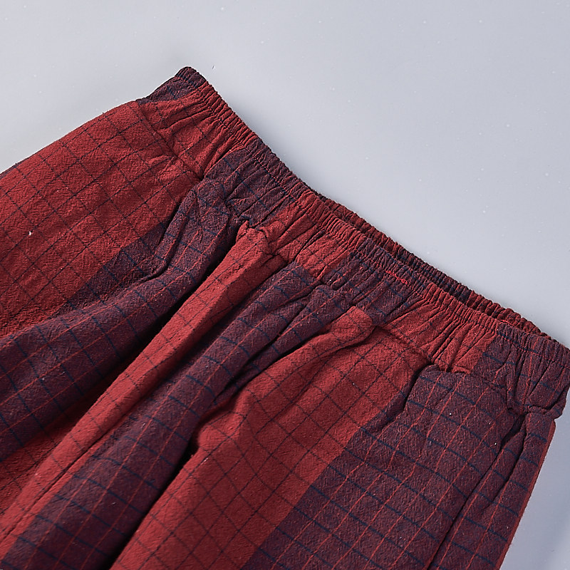 1124加厚夹棉复古格子休闲裤 女77176秋冬保暖显瘦宽松棉麻哈伦裤