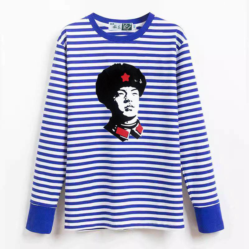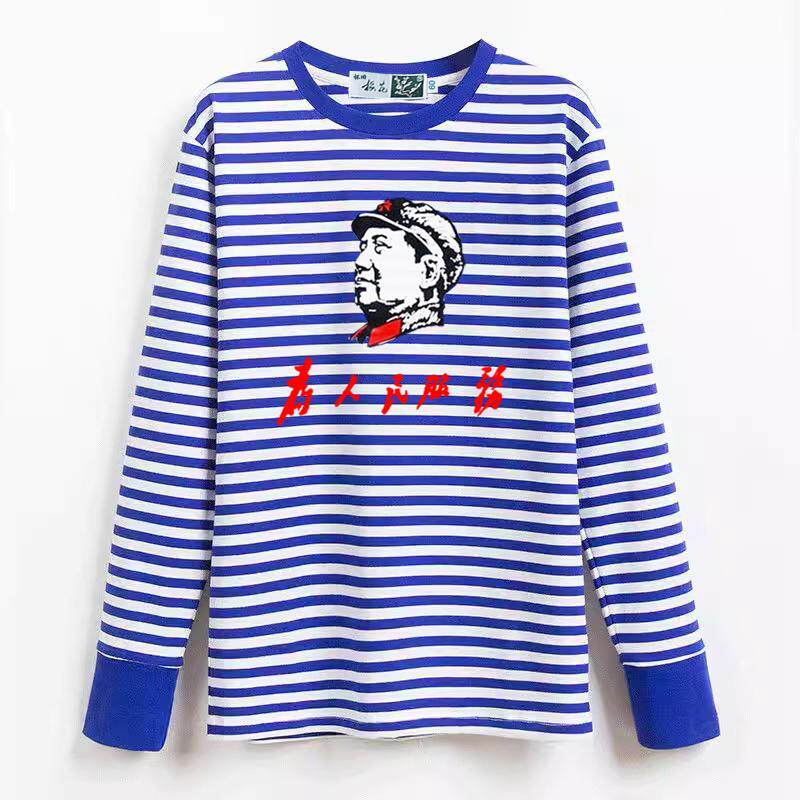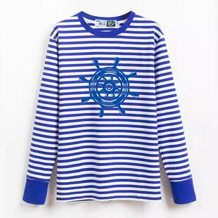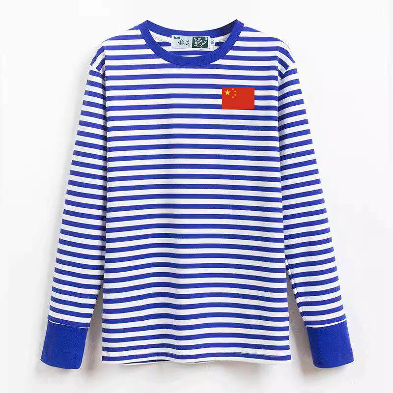 怀旧梅花纯棉海魂衫 蓝白条纹女儿童水手服T恤活动服印字LOG 男长袖