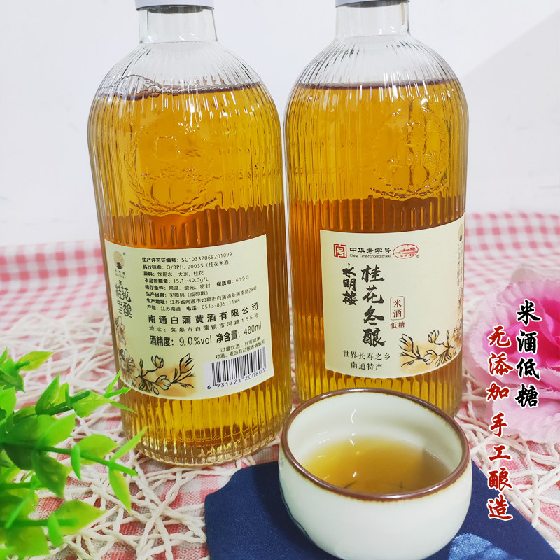 手工酿造9度480ml 水明楼白蒲特产精品桂花冬酿瓶装 实体店