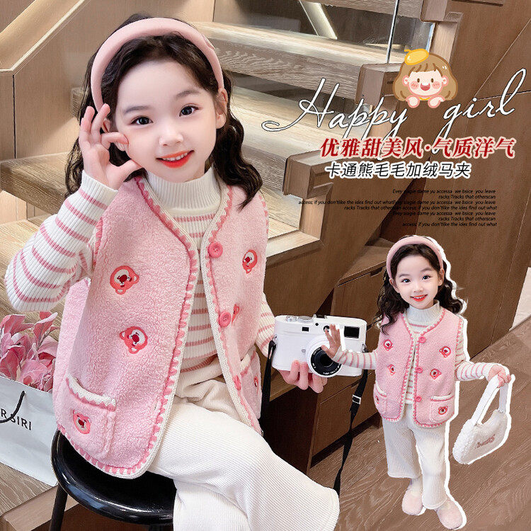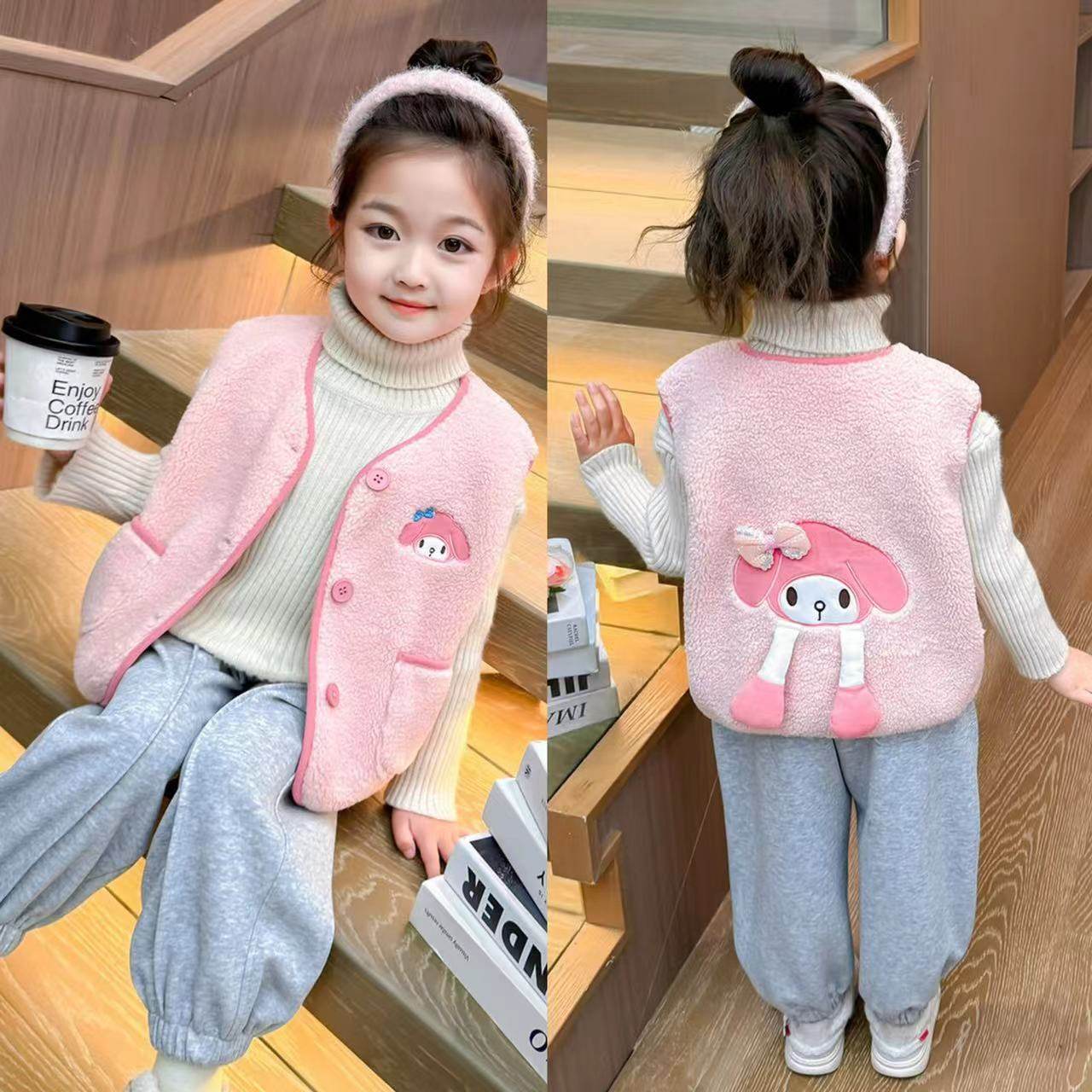 女童库洛米背心宝宝马甲2025春秋冬新款 马夹羊羔加绒美乐外穿坎肩