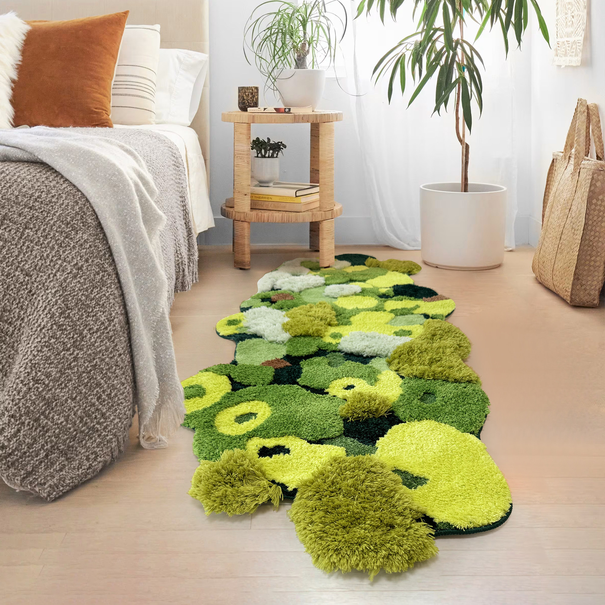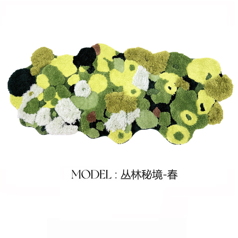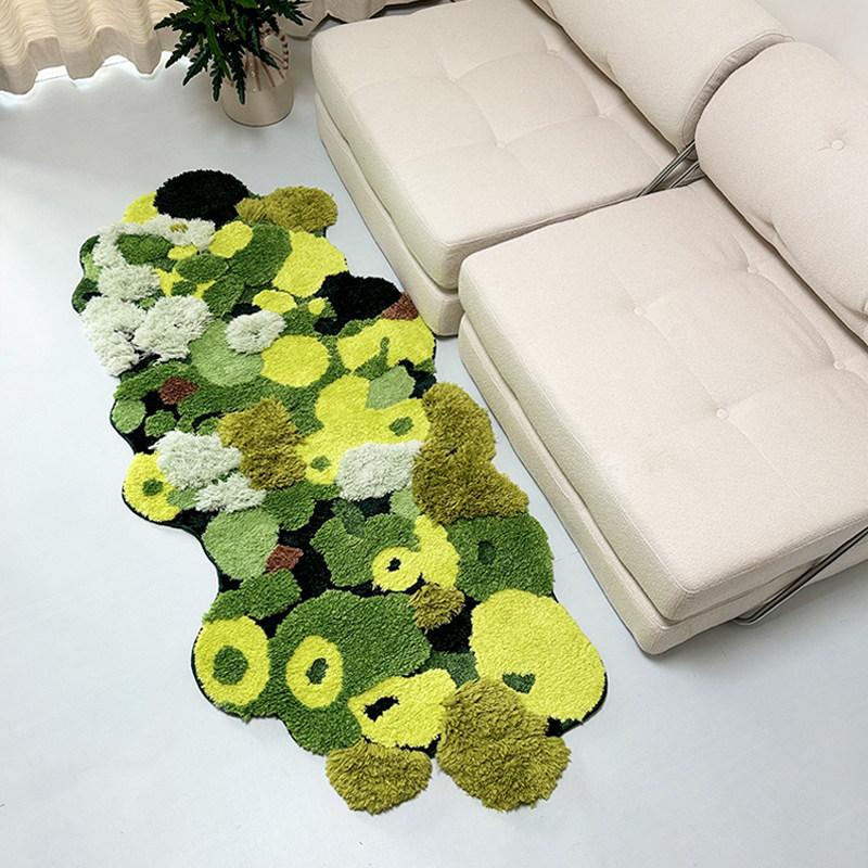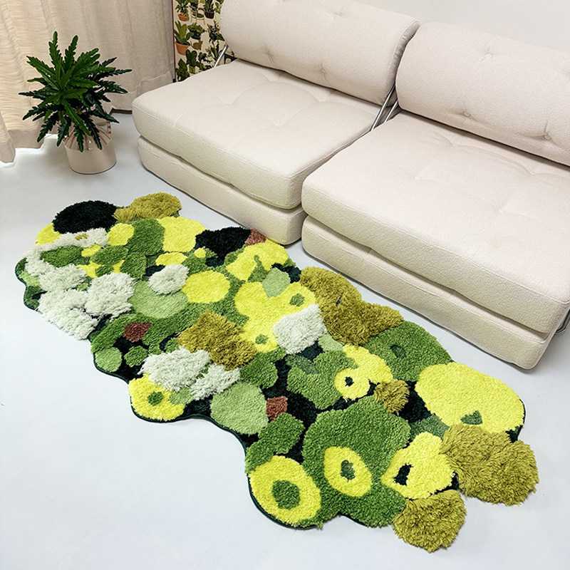卧室地毯床前床边毯子绿色苔藓儿童房间地垫异形飘窗垫长条可机洗