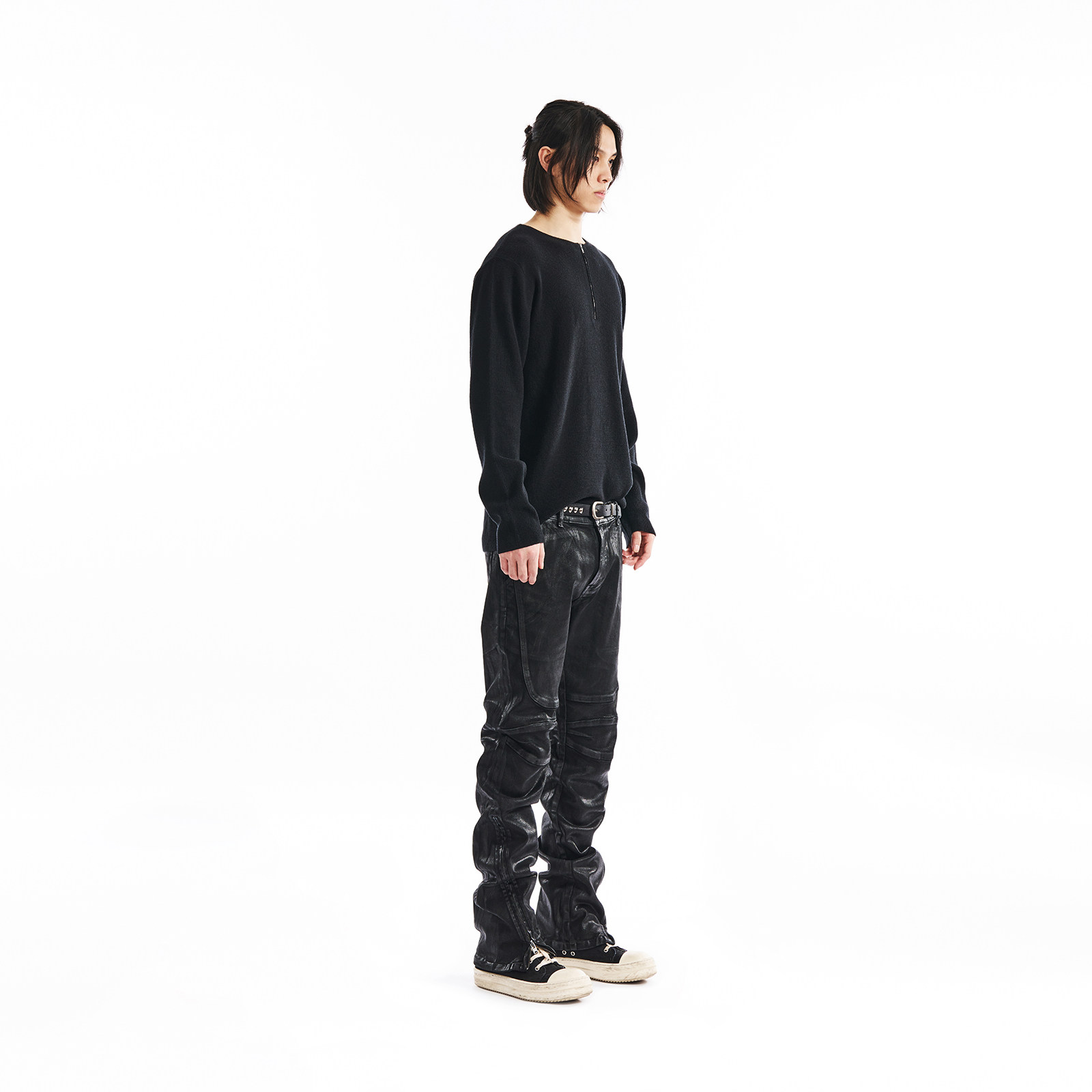 物理少年「林野漫步」豹纹数码 印花分割弯刀廓形双腰头牛仔长裤