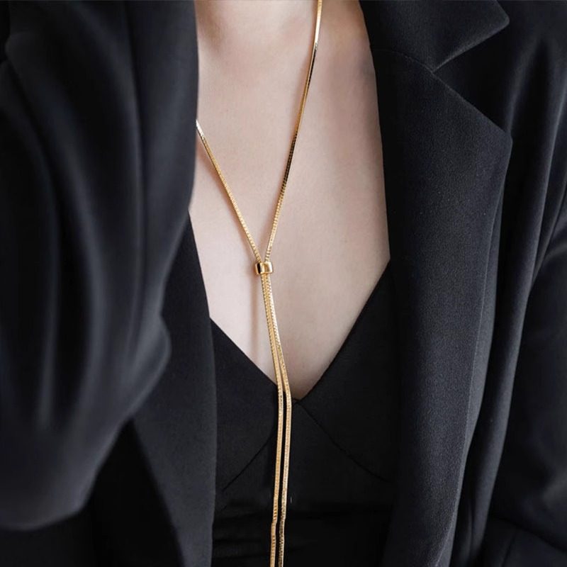 轻奢高级抽拉蛇骨项链长款 法国 Dani Glam 潮流毛衣链 设计师