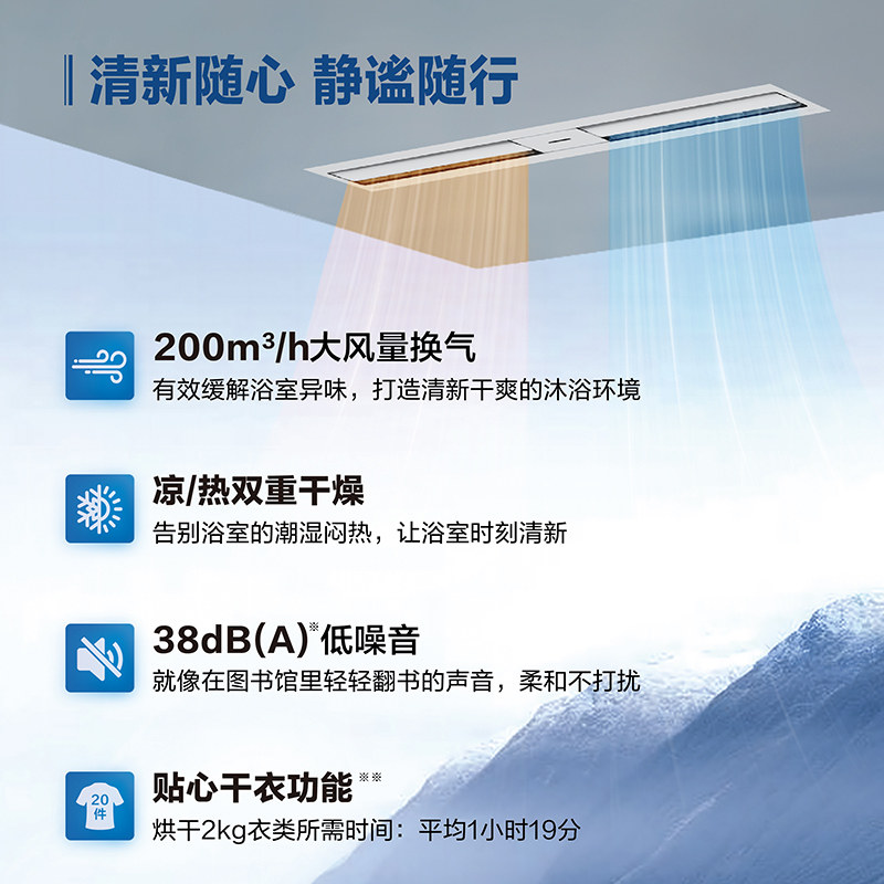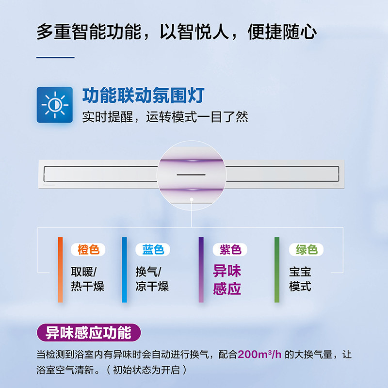 松下线性隐藏式 风暖浴霸智能取暖卫生间蜂窝大板石膏板吊顶暖风机