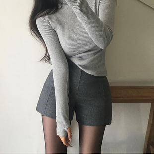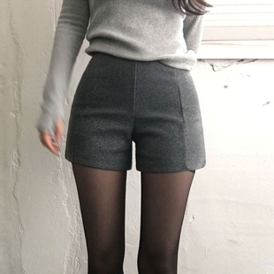 辣妹百搭打底三分裤 高腰包臀灰色呢子靴裤 女秋冬2025韩版 毛呢短裤