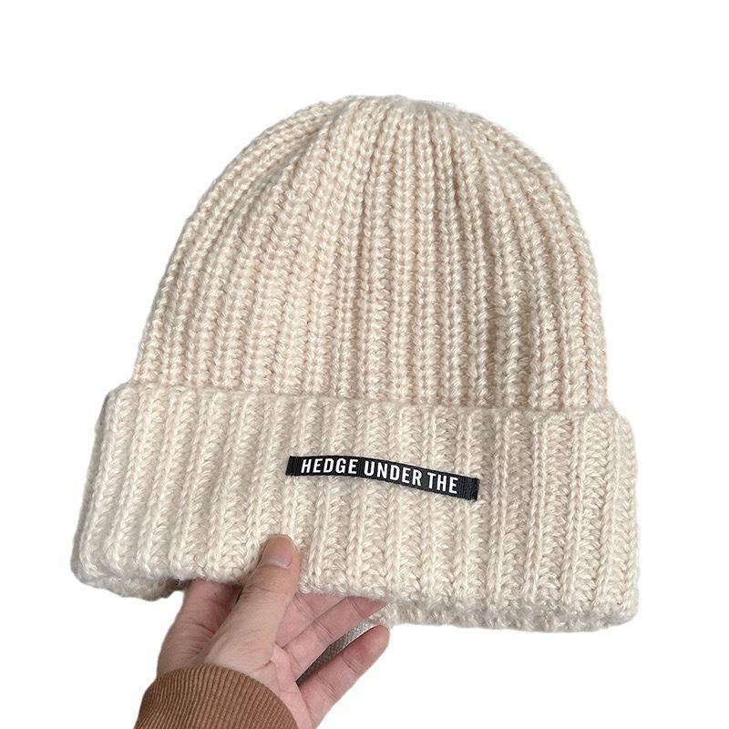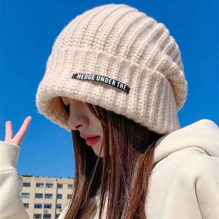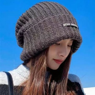 白色小熊耳朵毛线针织帽子女冬显脸小毛绒可爱护耳套头帽保暖冷帽