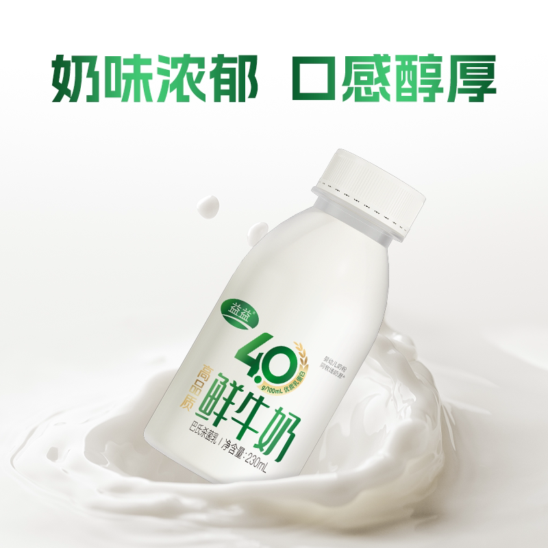 益益4.0高品质鲜牛奶230ml 牧场酸牛奶巴氏杀菌日期新鲜 7瓶
