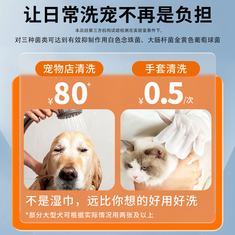 宠物免洗清洁手套湿巾幼猫狗狗一次性专用干洗护理用品除臭免洗澡