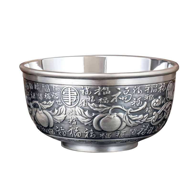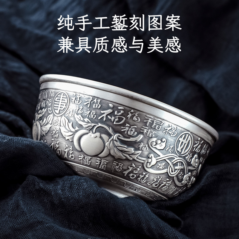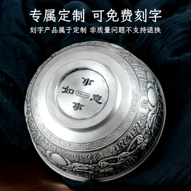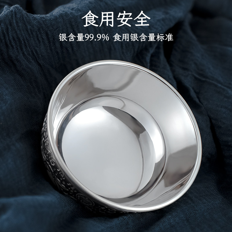 滇庆堂银碗999纯银碗筷勺三件套家用雪花银碗食品级足银宝宝餐具